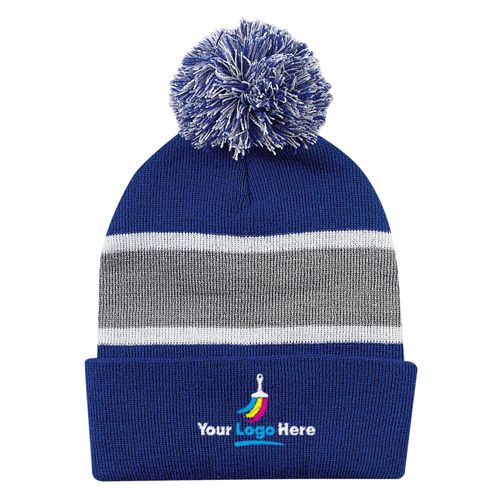 Custom Knit Hat with Pom-Pom Reflective Custom-Printed Beanie Personalized Beanie Hat with Built-in Bluetooth Headphones Carhartt Custom Winter Hat with Logo Fitted Embroidered. Sport-Tek Stripe Pom Pom Beanie customize from 1499 to 2799 No Minimum Quantities Apollo Acrylic Beanie with Pom customize from 1699 to 2599 Apollo Slouchy Beanie. Sportsman 12 Pom-Pom Knit Beanies From ice skating in the park to skiing down a slippery slope there are many occasions where you need to keep warm during the winter.